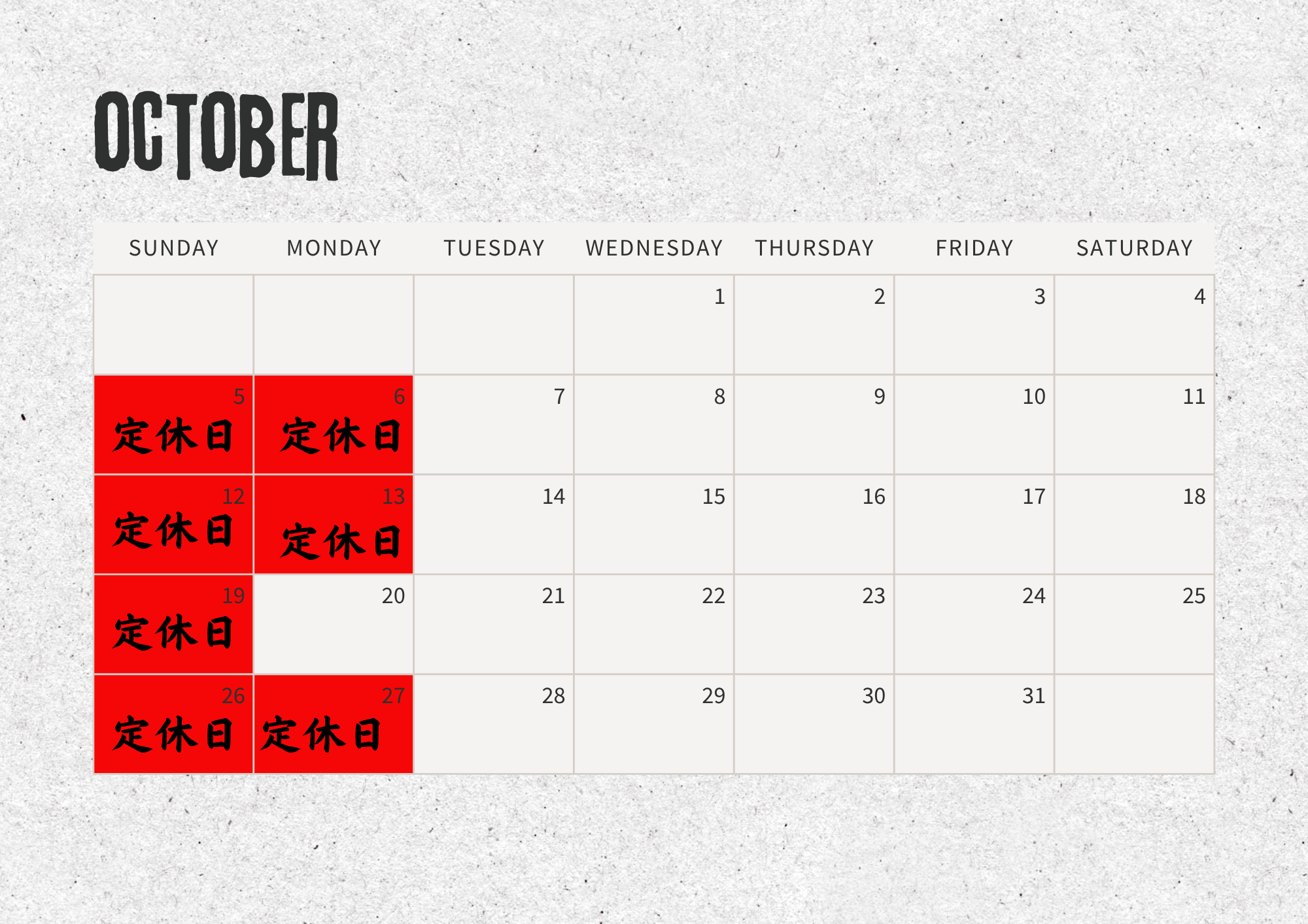 (月曜日は月2回程、詳しくはお問い合わせください。)